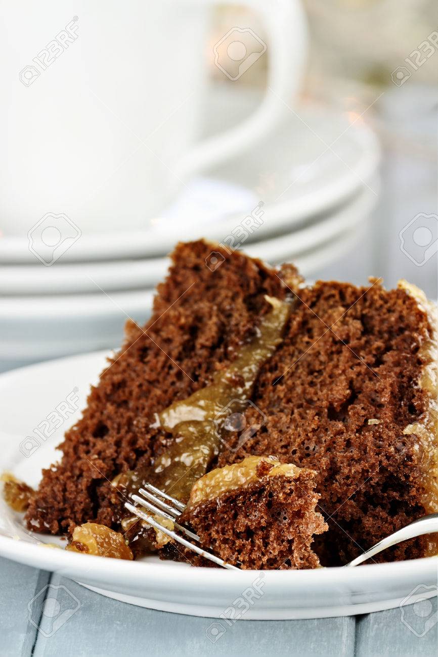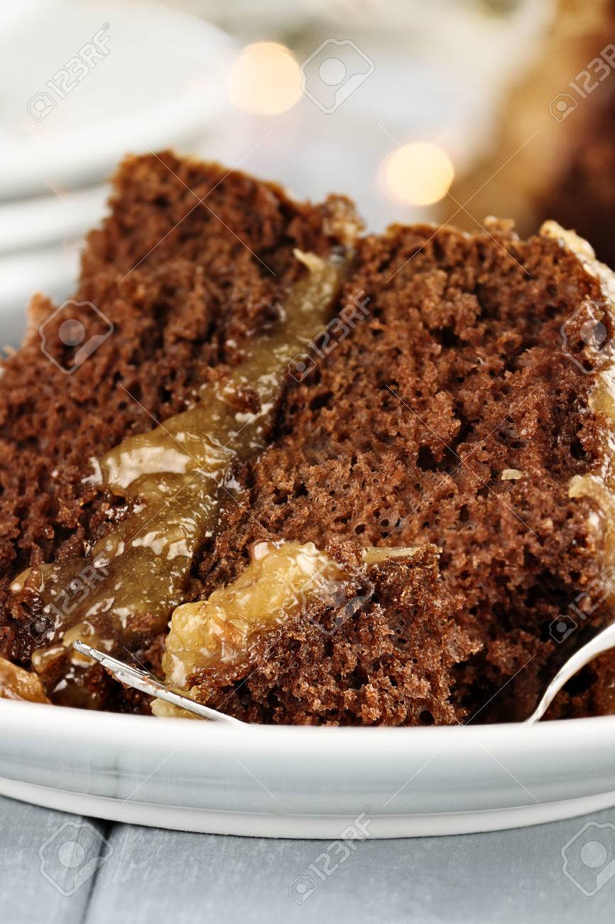 Immagini Stock Un Pezzo Di Torta Al Cioccolato Tedesco Su Un Piatto Profondita Di Campo Con Il Fuoco Selettivo Sul Morso Sulla Forcella Image