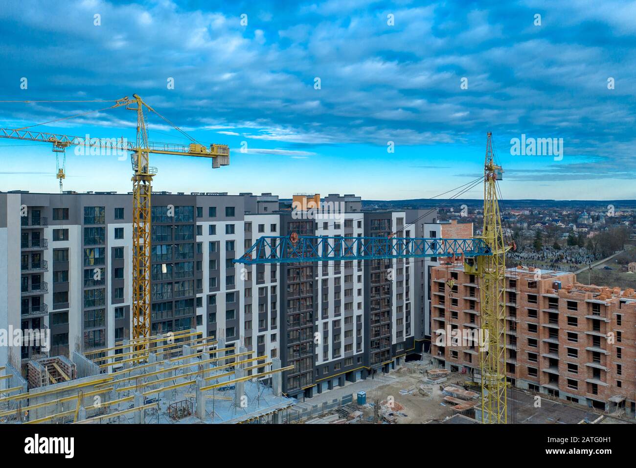 Construction Site Background Hoisting Cranes And New Multi Storey Buildings Industrial Background Modern Urban Building Under Construction With A Stock Photo Alamy