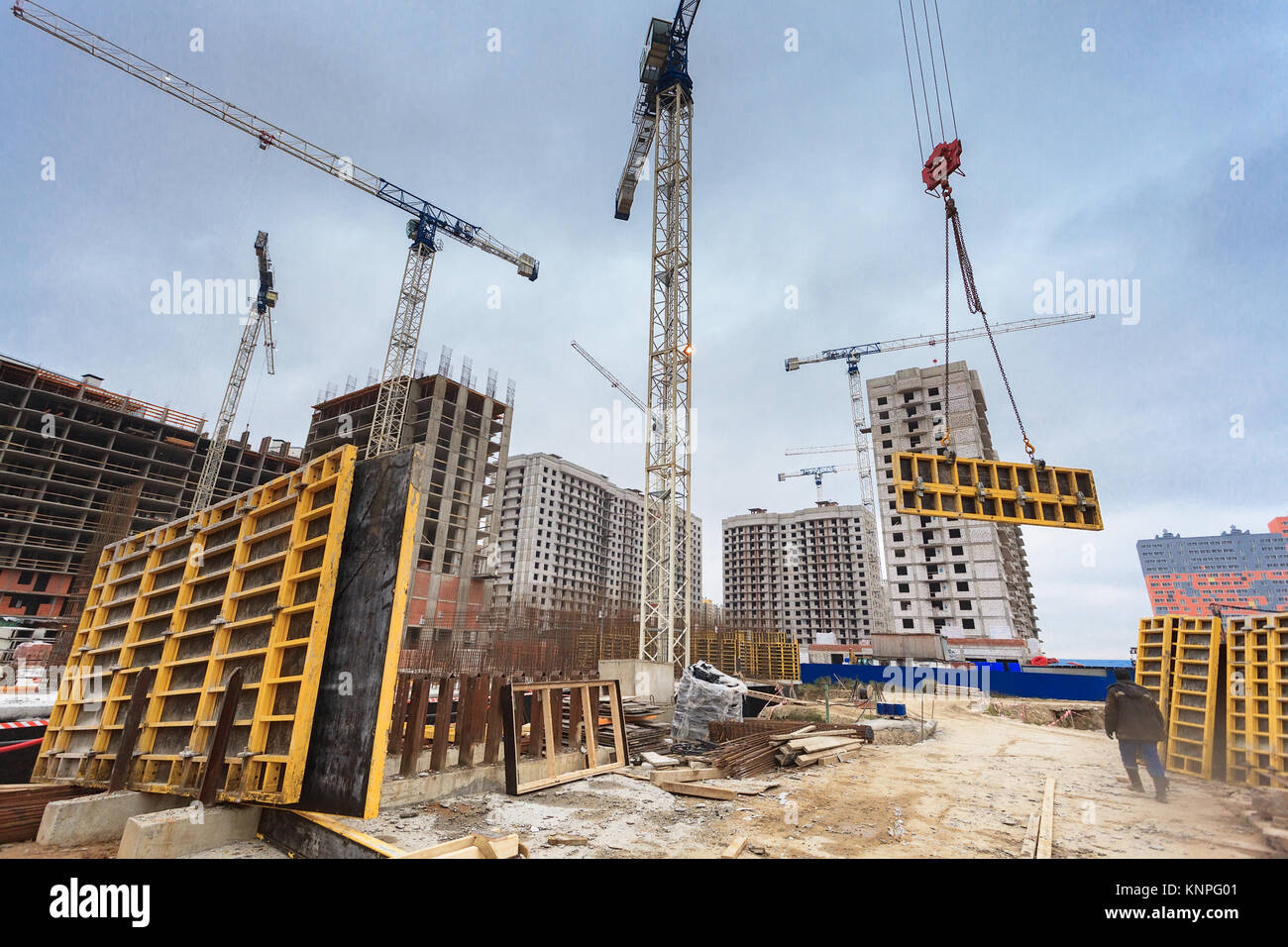 Construction Site Background Hoisting Cranes And New Multi Storey Buildings I Ndustrial Background Stock Photo Alamy