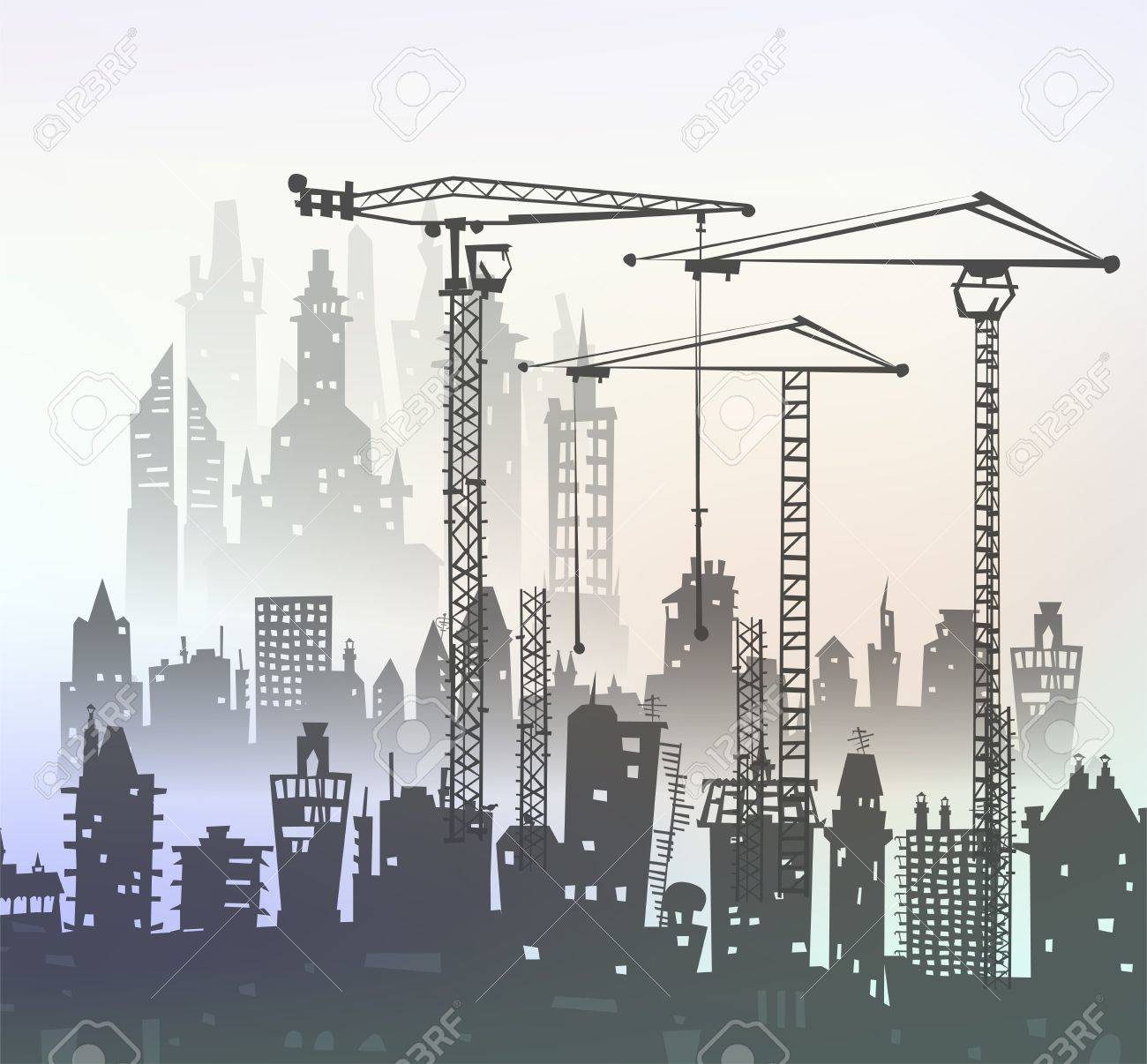 Building Site With Cranes City Background Stock Illustration Illustration Of Equipment Powerful