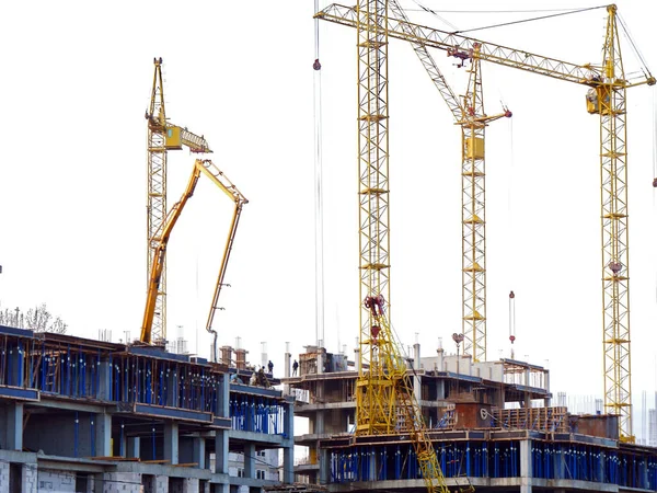 Construction Site Background Hoisting Cranes And New Multi Storey Buildings Tower Crane And Unfinished High Rise Building Many Stock Image Image Of Buildings Home