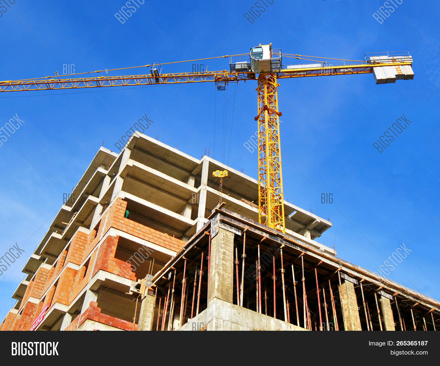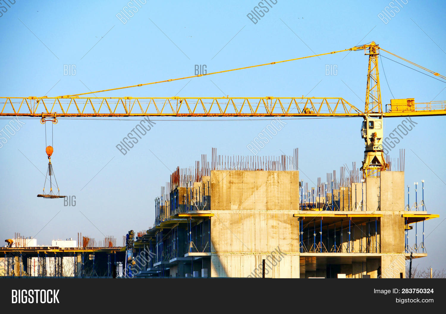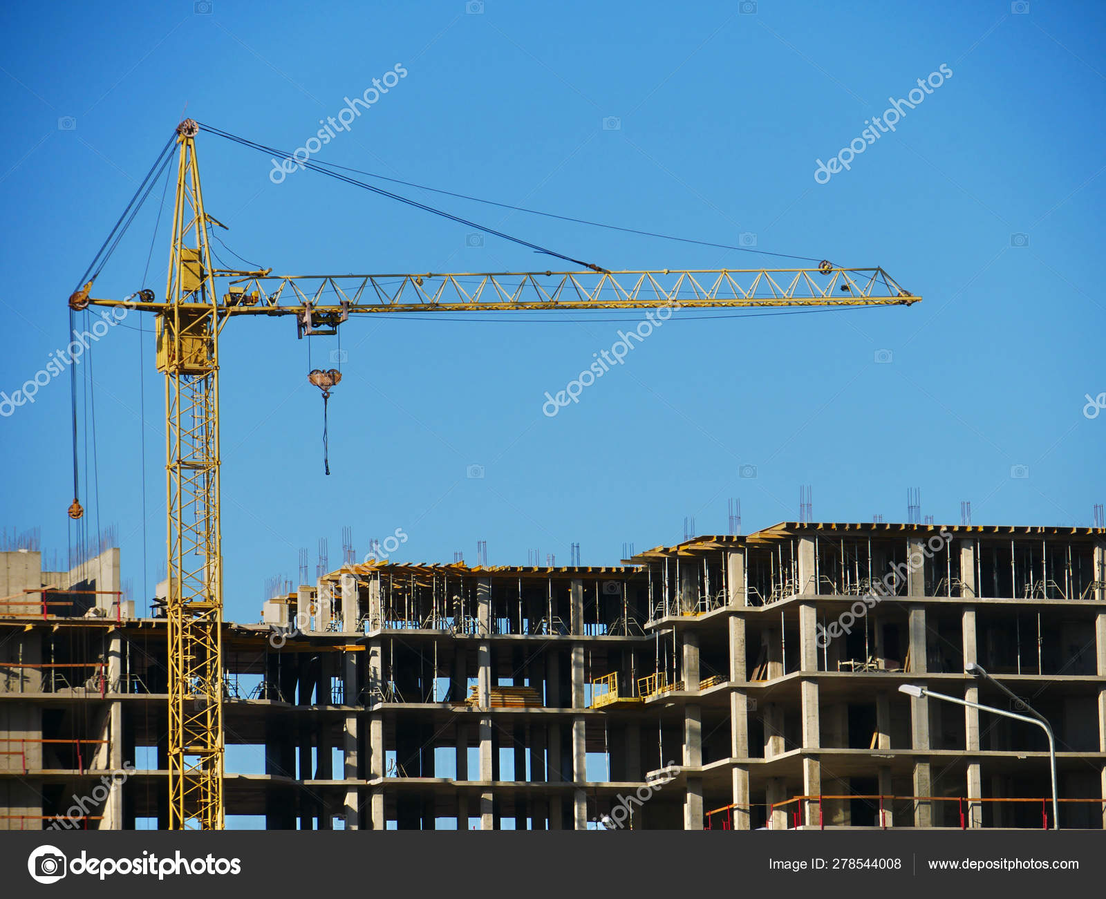 Concrete Building Under Construction Construction Site Background Crane Near Building Stock Photo Download Image Now Istock