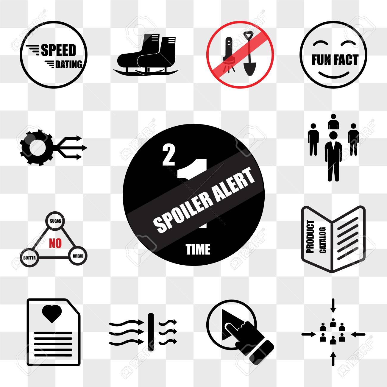 Set Of 13 Transparent Icons Such As Spoiler Alert Customer Centric Royalty Free Cliparts Vectors And Stock Illustration Image