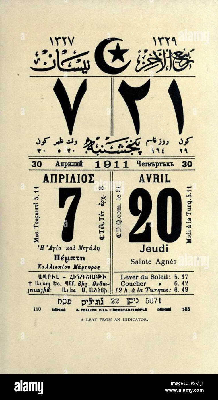 N A Inglese 1911 Multilingual Ottomano Pagina Del Calendario L Angolo Superiore Sinistro Mostra La Rumi