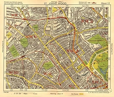 Amazon Com Nw London St John S Wood Belsize Park Maida Vale Queens Park Bacon 1955 Old Map Antique Map Vintage Map London Maps Posters Prints