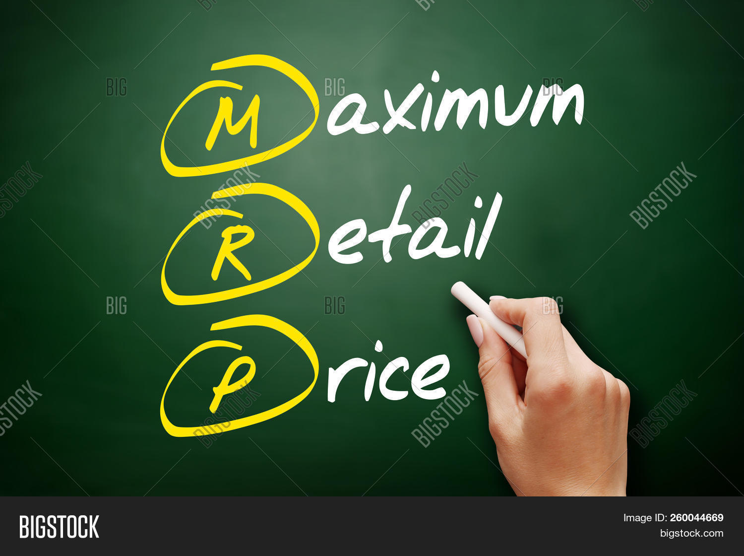 Mrp Maximum Retail Price Acronym Business Concept On Blackboard Image Stock Photo