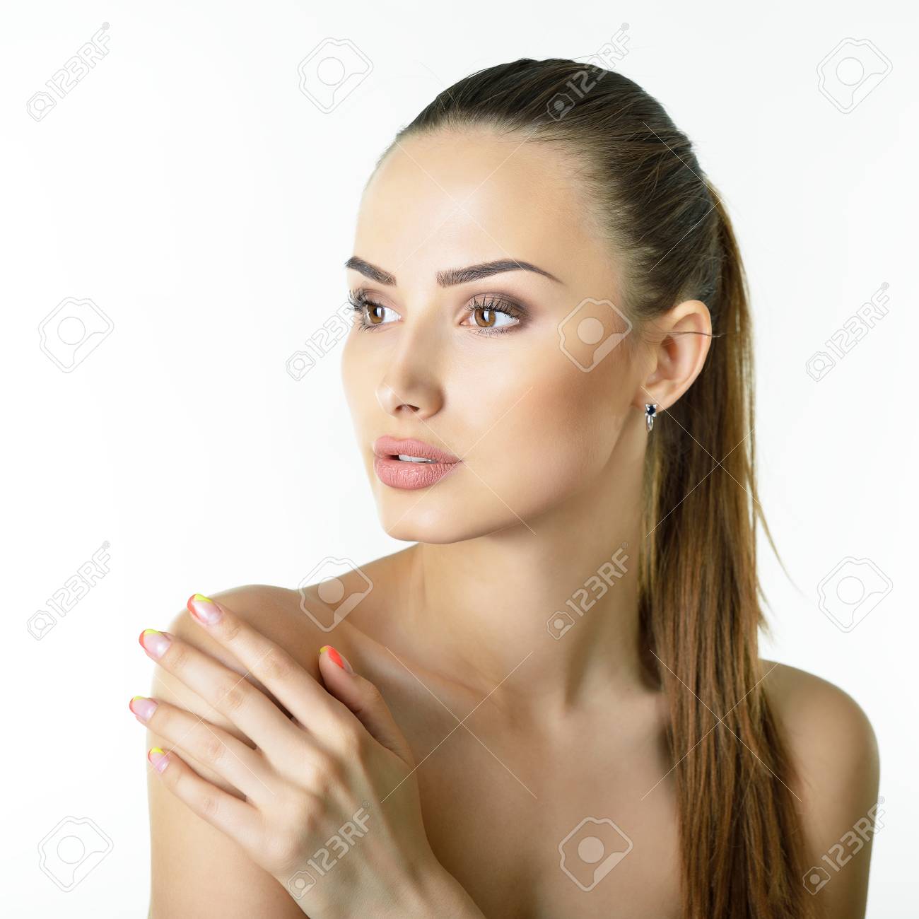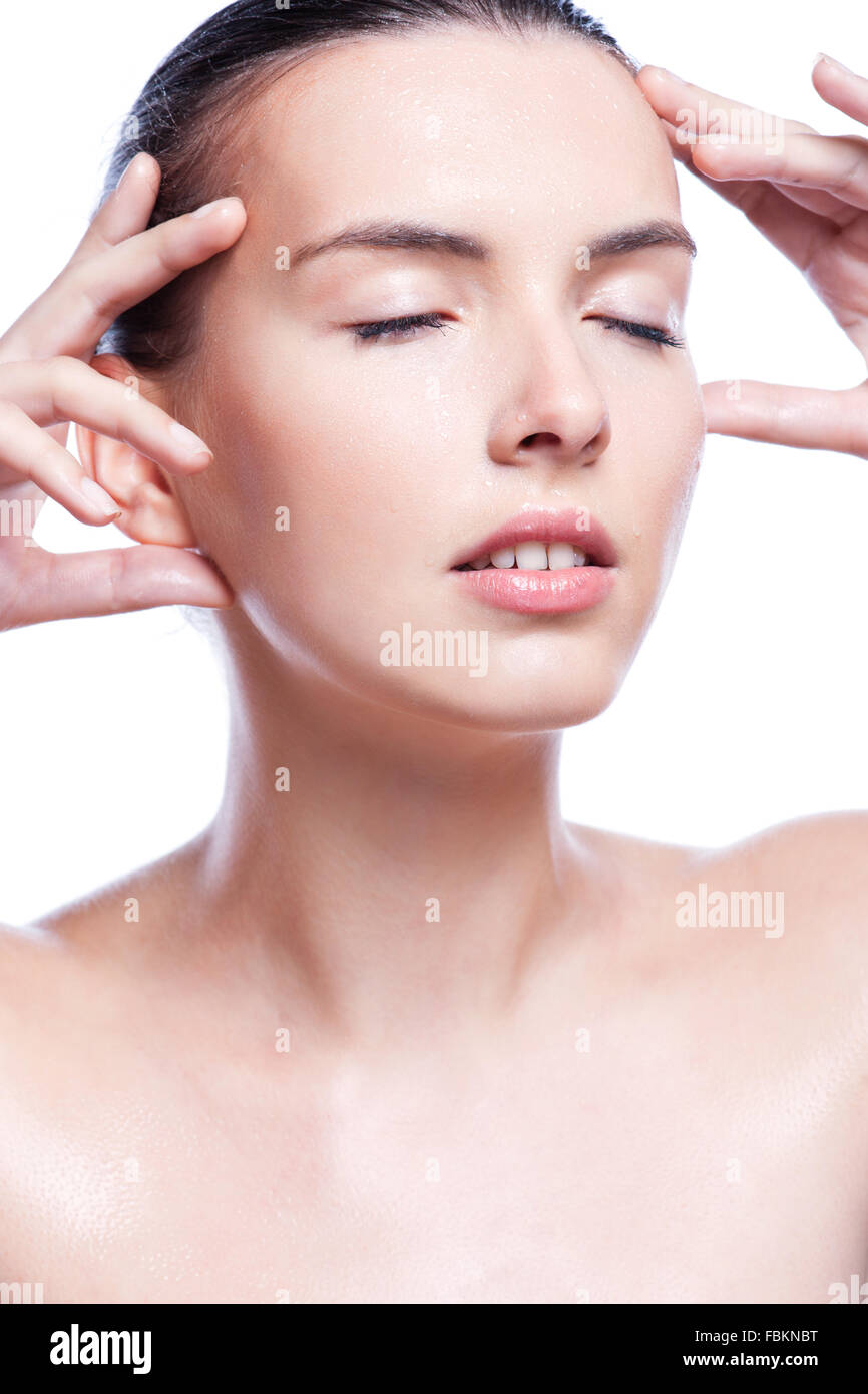 Ritratto Di Giovane E Bella Bruna Donna Con Viso Pulito Isolato Su Un Bianco Foto Stock Alamy