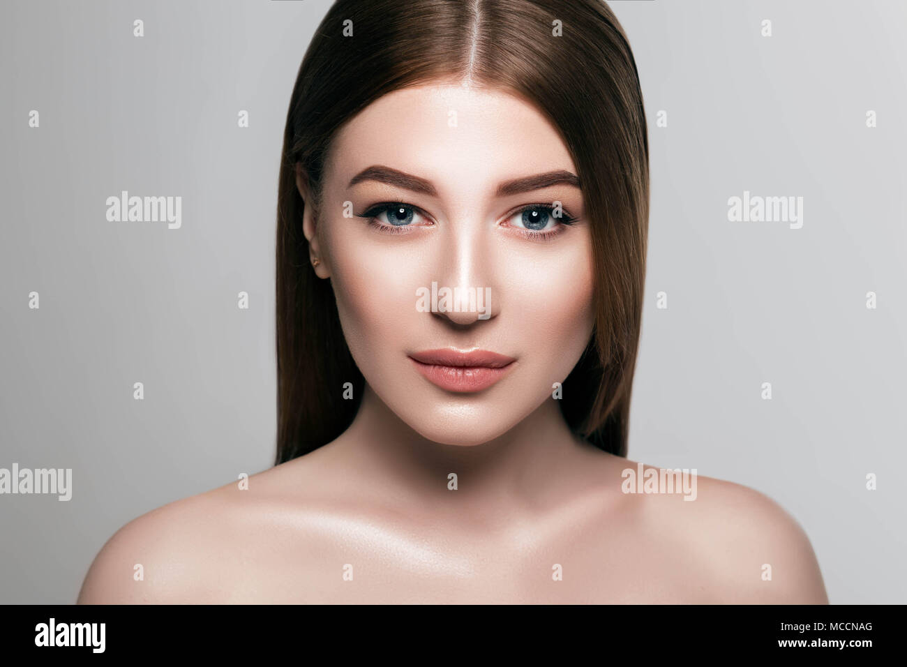 Ritratto Di Donna Con Fresco Viso Pulito E Perfetto Sopracciglia Foto Stock Alamy