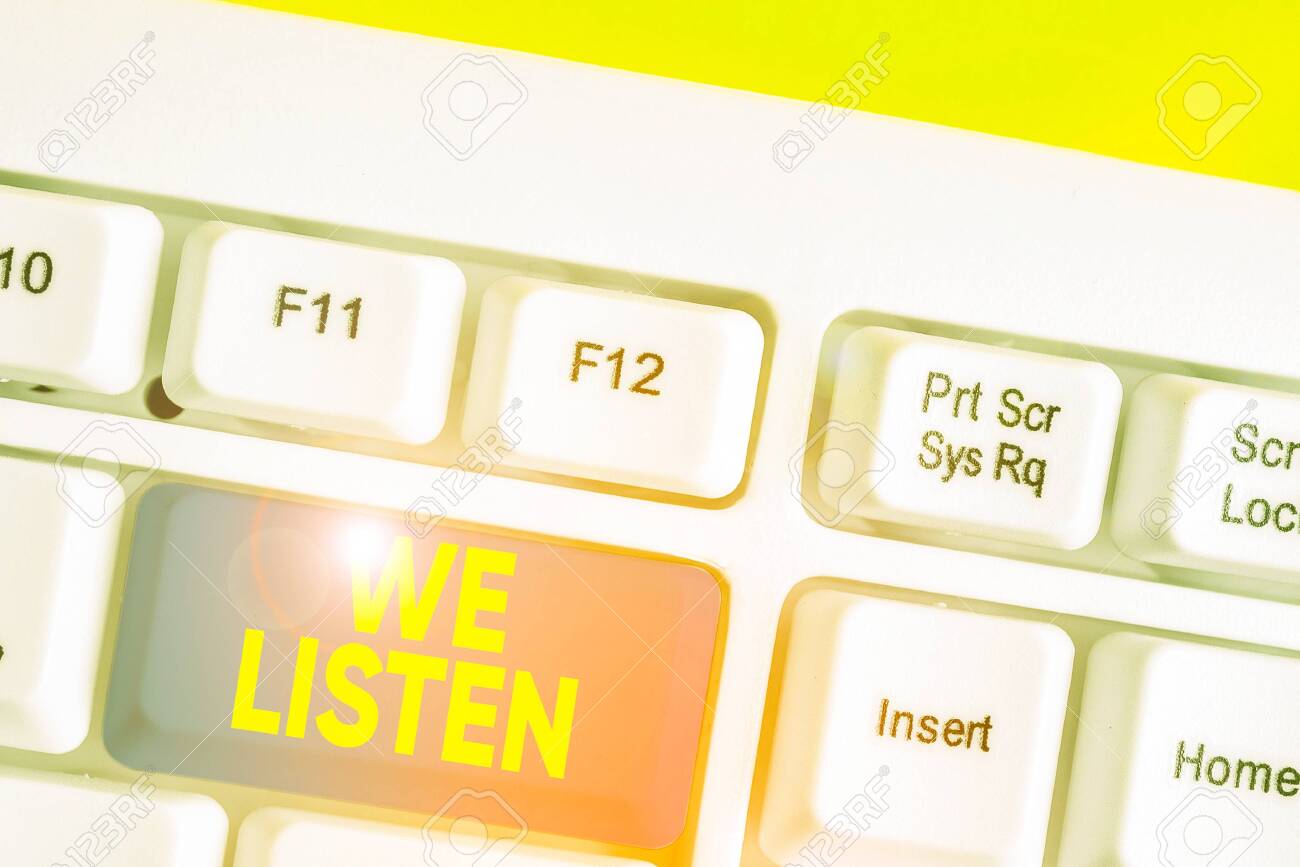 Conceptual Hand Writing Showing We Listen Concept Meaning Group Stock Photo Picture And Royalty Free Image Image
