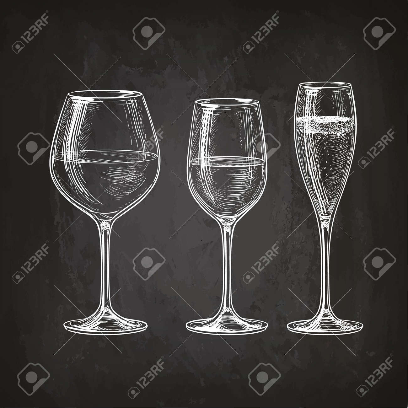 Conjunto De Copas El Vino Tinto Vino Blanco Y Champan Croquis Dibujado A Mano En La Pizarra Ilustraciones Vectoriales Clip Art Vectorizado Libre De Derechos Image
