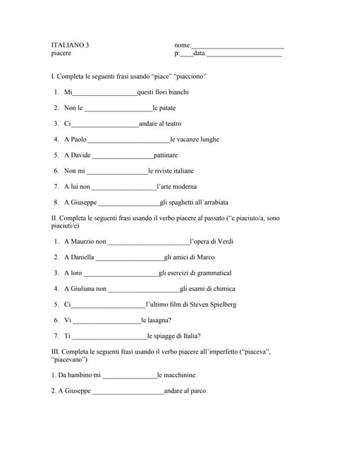 Verbo Piacere Risorse Per L Insegnamento