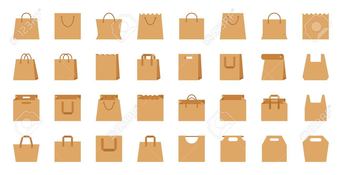 Shopping Bag Paper Craft Eco Package Flat Cartoon Icons Set Royalty Free Cliparts Vectors And Stock Illustration Image