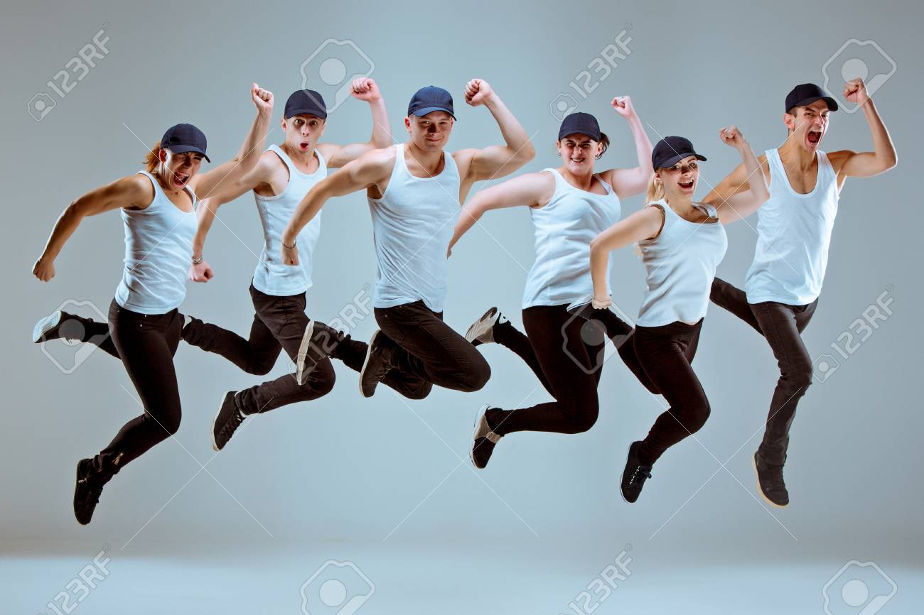 Gruppo Di Uomini E Di Donne Che Ballano Coreografia Hip Hop Fotografia Stock Immagine Di Maschio Salto