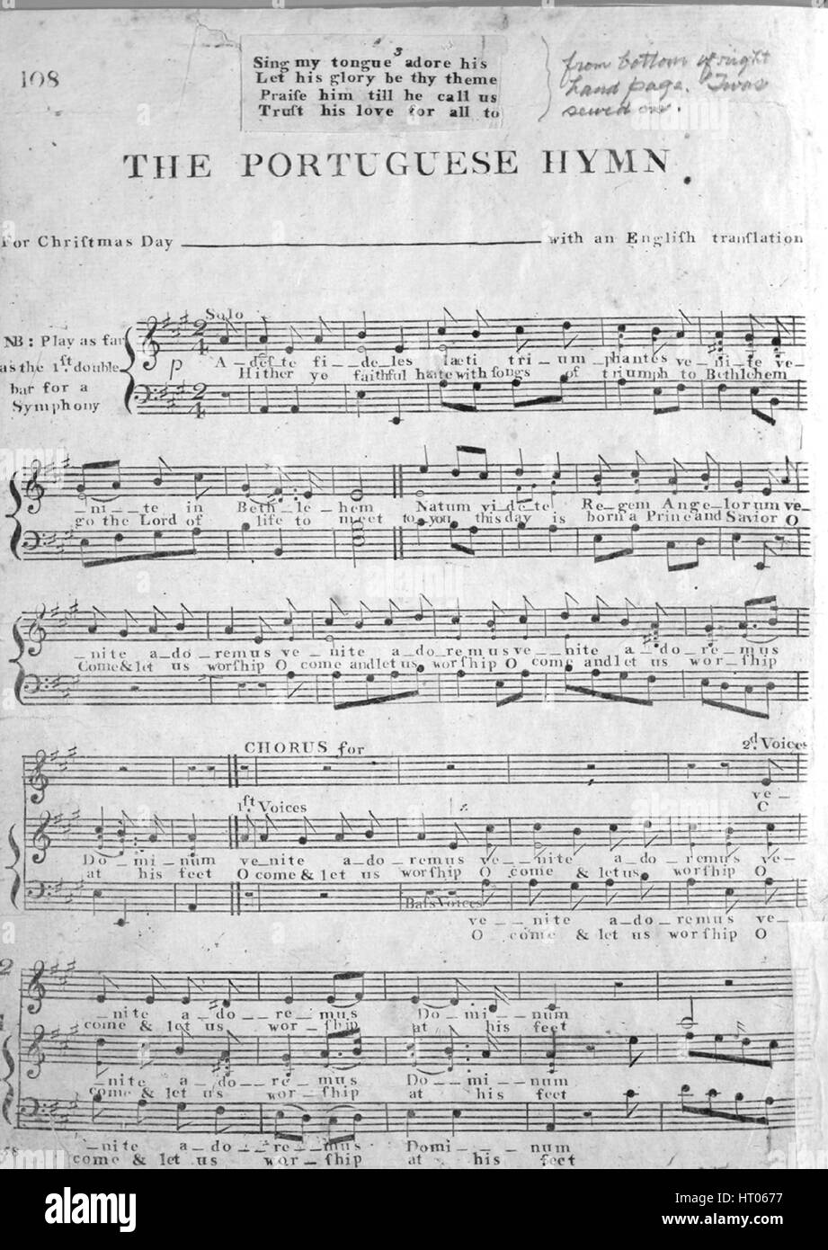 Foglio Di Musica Immagine Copertina Della Canzone 1 L Inno Portoghese Tune Adestes Fideles 2 Il Siciliano Inno Per Il Giorno Di Natale Con Una Traduzione Inglese Con Paternita Originale Lettura Delle Note