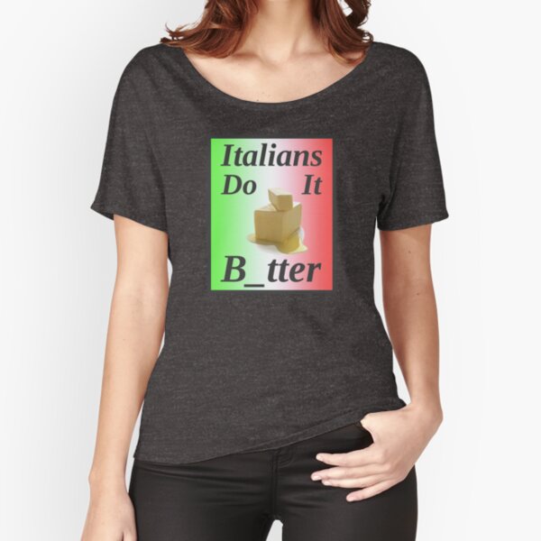 Availability depending on style Choose your favorite Italians Do It Better shirt style vneck or crew neckline;. Shop Italians Do It Better do it tshirts designed by bearseason as well as other do it merchandise at TeePublic. Shop highquality unique Italians Do It Better TShirts designed and sold by artists Available in a range of colours and styles for men, women, and everyone.