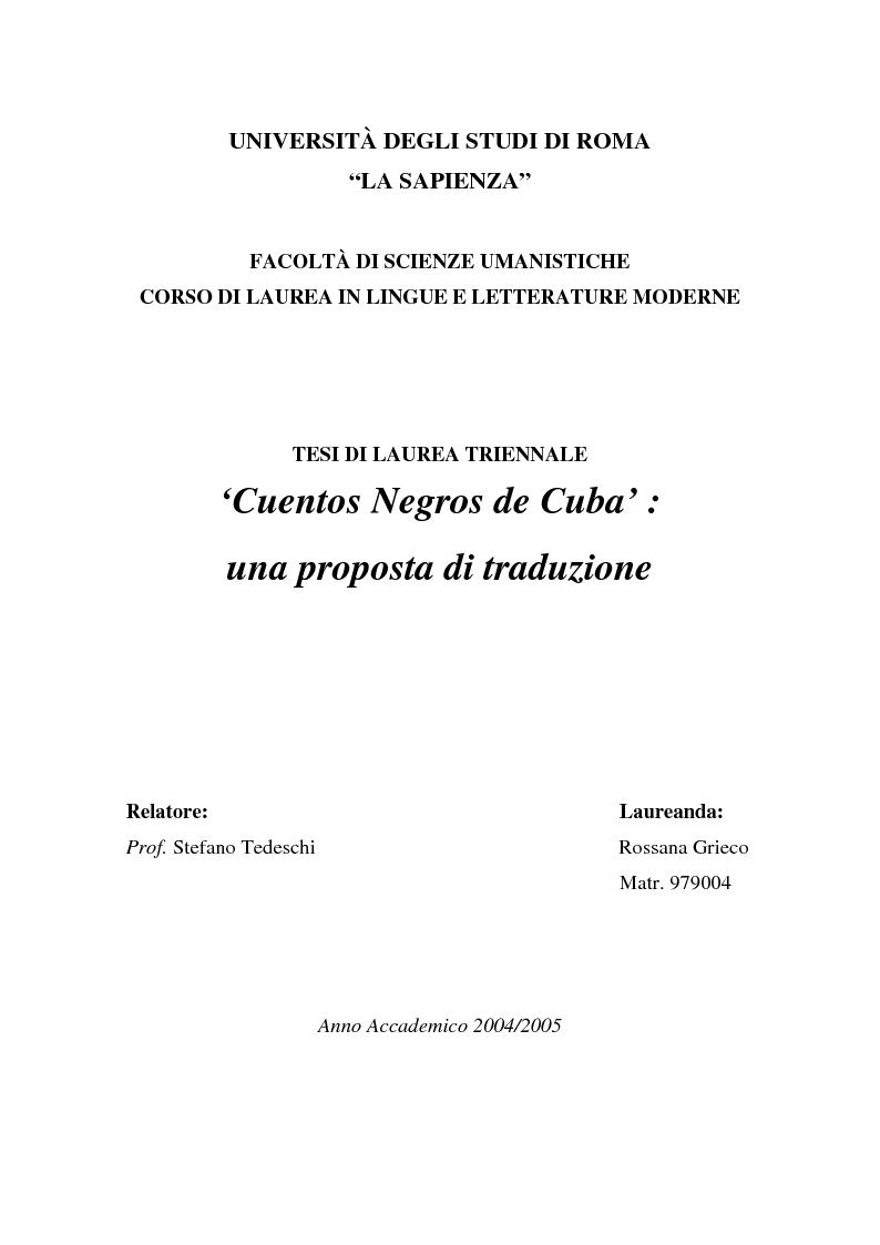 Universita Degli Studi Di Roma La Sapienza Facolta Di Scienze Umanistiche Corso Di Laurea In Lingue E Letterature Moderne Tesi Di Laurea Triennale Cuentos Negros De Cuba Tesionline