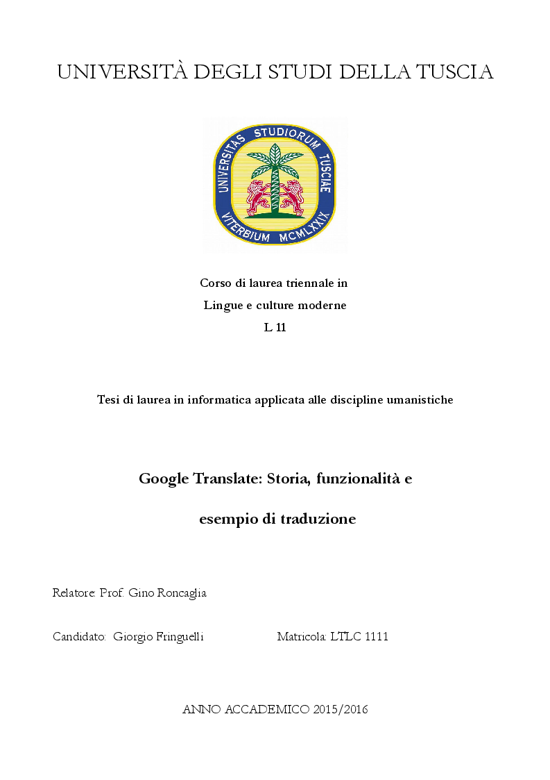 Google Translate Storia Funzionalita E Esempio Di Traduzione Anteprima Tesi Pagina 1 Di 6 Tesionline