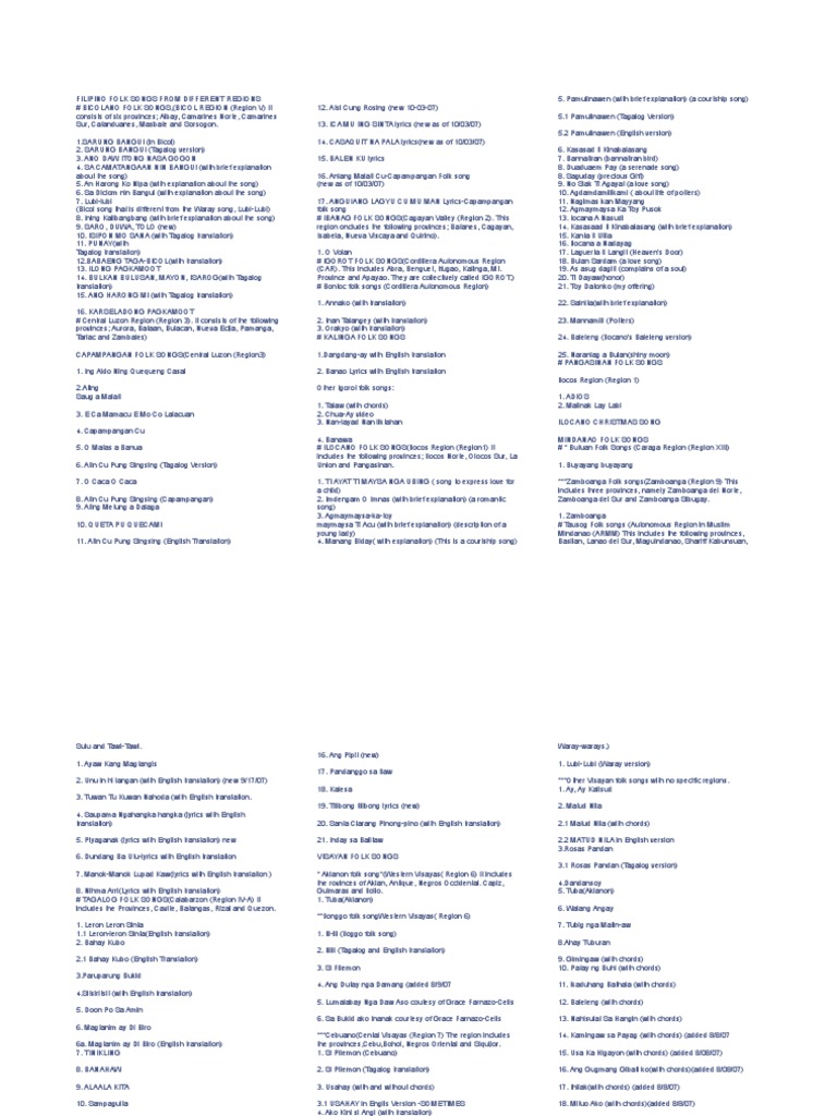 List Of Filipino Folk Songs