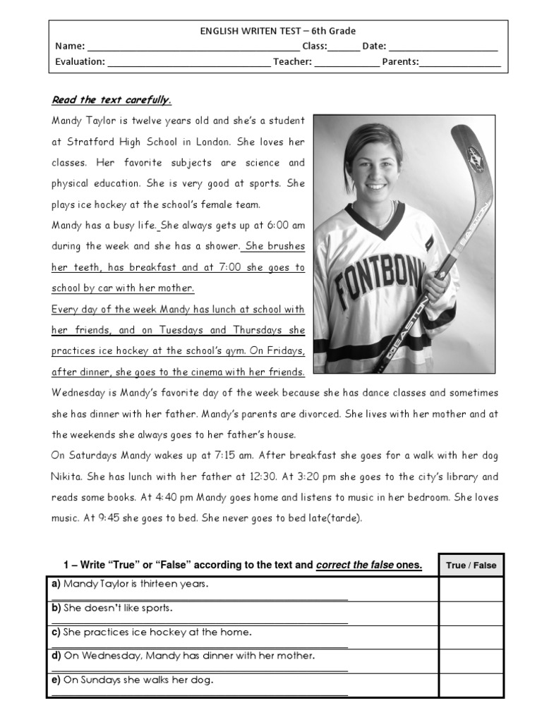 English Exercises My Daily Routine Reading Comprehension