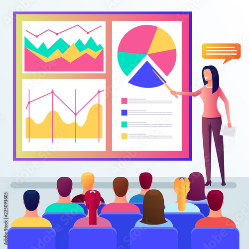 Business Woman Teacher Auditor Speaker Talking Presenting Lecture Public Motivational Presentation Project Vector Flat Cartoon Graphic Design Illustration Buy This Stock Vector And Explore Similar Vectors At Adobe Stock Adobe Stock