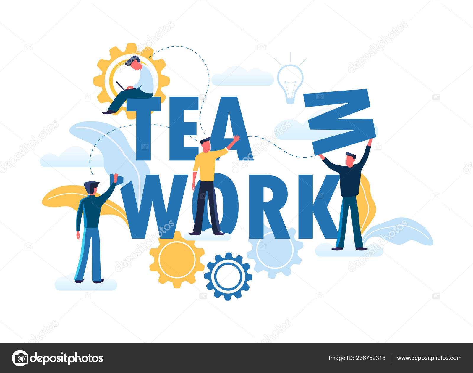 Vector Business Illustration Businessmen Together Build Word Teamwork Abstract Design Graphic Business People Team Work Together And Cooperation Construction Business Project Vector Flat Cartoon Buy This Stock Vector And Explore Similar