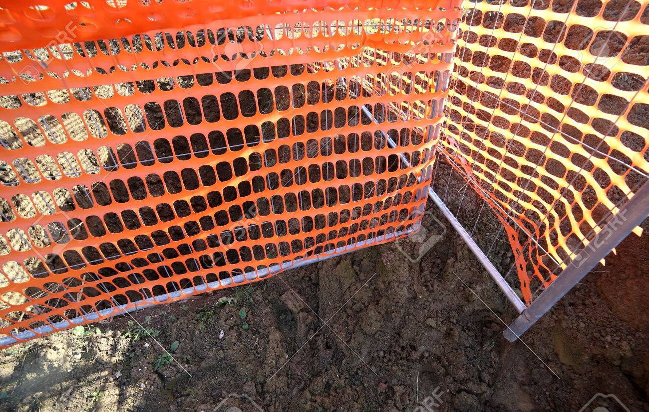 Immagini Stock Rete Di Sicurezza Arancione In Un Cantiere Di Costruzione Della Strada In Citta Image