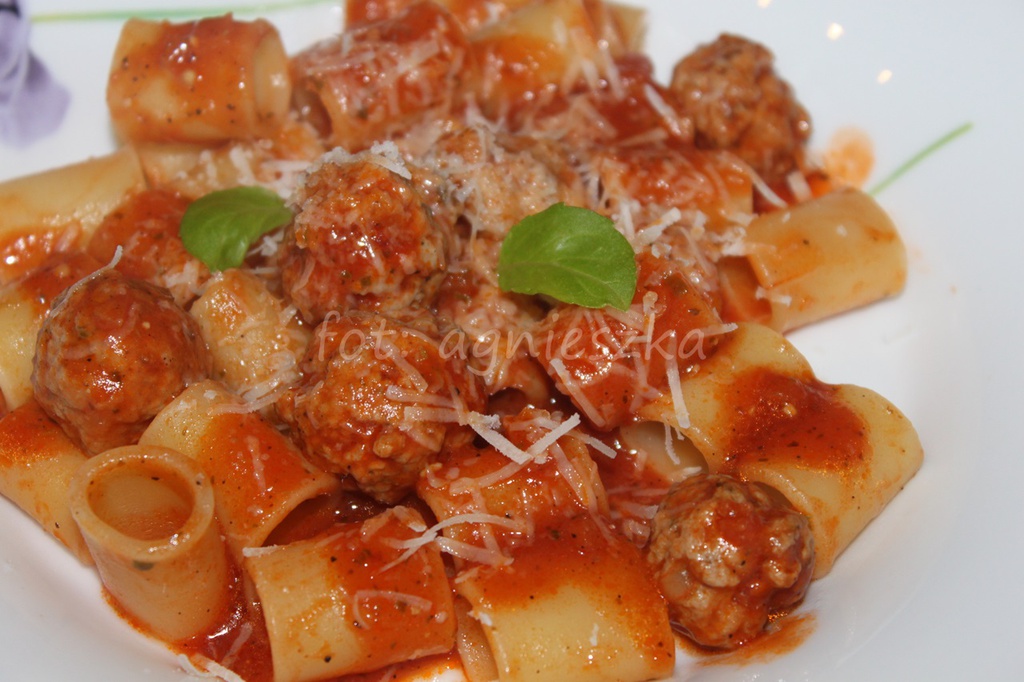 Mezze Maniche Rogate Z Kulkami Miesnymi W Sosie Neapolitanskim Doradcasmaku Pl
