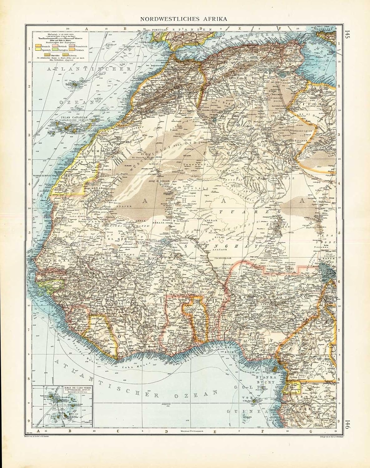 Amazon Com Antique Map North West Africa Cape Verde Sahara Andree 1904 Lithographic Prints Wall Art