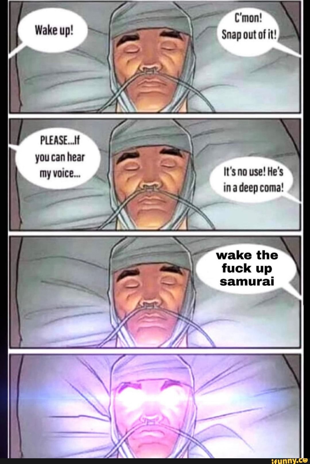 Wake The Explunged Up Samurai by zodiacsoldier A Member of the Internet's Largest Humor Community. Blank Wake the fuck up samurai template Create Make a Meme Make a GIF Make a Chart Make a Demotivational Flip Through Images Wake the fuck up samurai Template also called We got a city to burn Caption this Meme All Meme Templates Template ID Format png Dimensions 19x1080 px. It is for everyone, or it is for noone;.