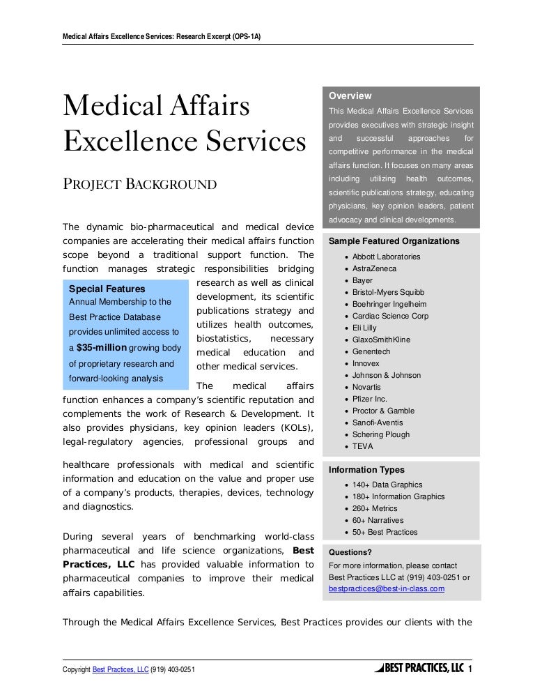 Medical Affairs Best Practices Database Provides Benchmarking Insights Success Failure Analogs And Various Critic Medical Education Health Economics Medical