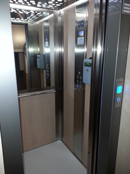 La cabina dell’ascensore ha dimensioni interne calpestabili di 130 cm di profondità e di 100 cm di larghezza con piccola finestra posta in corrispondenza di quella esistente esterna in vetrocemento. Categoria articolo di Decorazione di cabina ascensore, siamo produttori specializzati provenienti dalla Cina, Decorazione di cabina ascensore, Decorazione dell'elevatore fornitori / fabbrica, il commercio allingrosso di alta qualità prodotti di Decorazione di cabina ascensore R & S e produzione, abbiamo il perfetto servizio e supporto tecnico postvendita. Un ascensore è un impianto in grado di sollevare persone da un piano all'altro di un edificio o da livelli diversi di una costruzione o di una struttura Un ascensore è solitamente costituito da una cabina che contiene i passeggeri e che viene sollevata da un motore elettrico che agisce su funi alle quali la cabina è agganciata;.