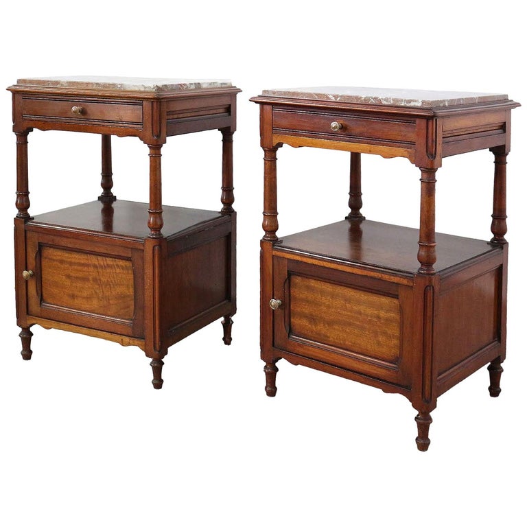 Antique French Bedside Tables Cabinets Pair Walnut Marble Topped At 1stdibs