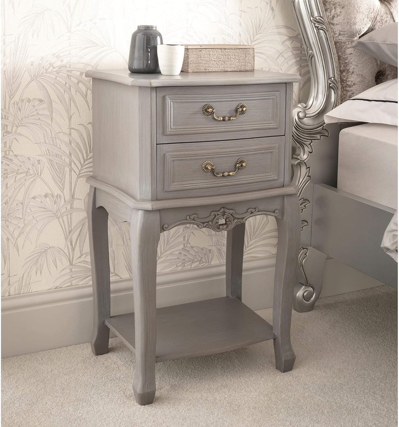 Louis French 2 Drawer Bedside Cabinet Grey Painted French Style Bedside Cabinet French Bedside Tables