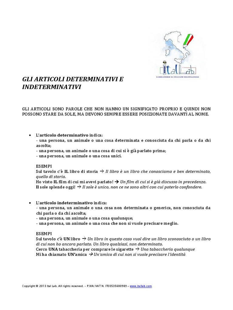 Articoli Determinativi E Inderminativi