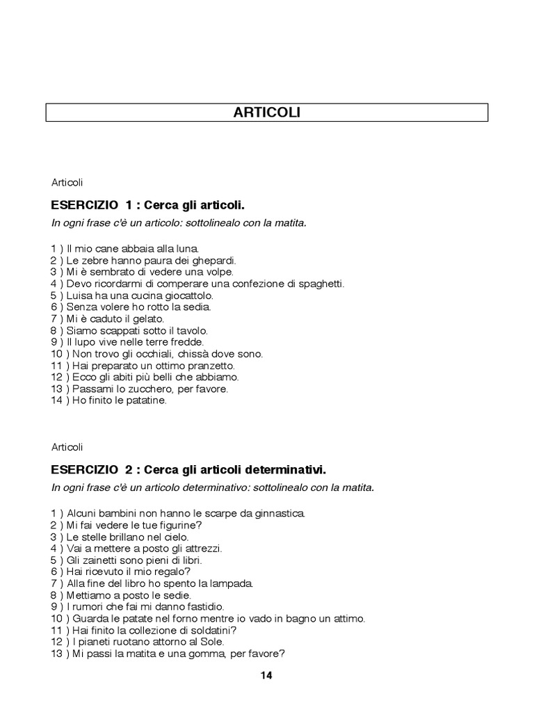 Esercizi Articoli In Italiano Per Praticcare Docsity