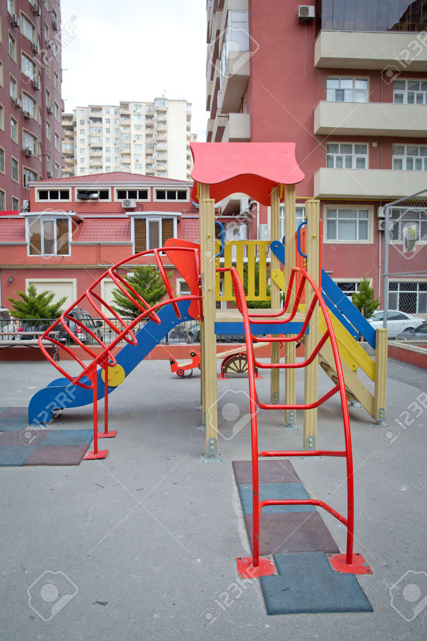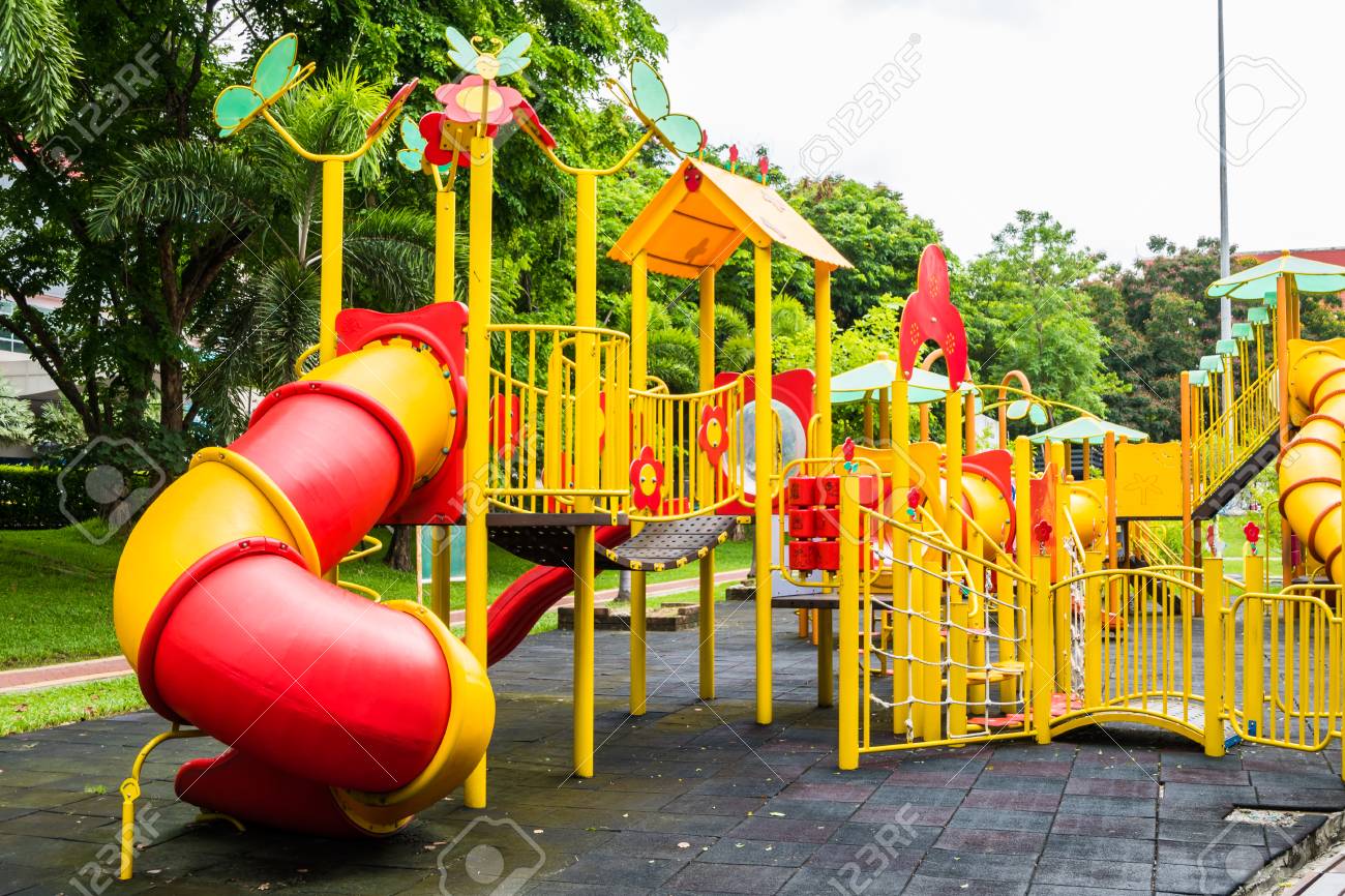 Kids Playground With Slides In The Park Play Ground Red And Stock Photo Picture And Royalty Free Image Image
