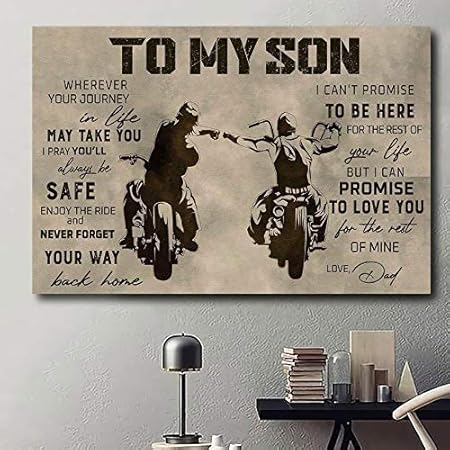 Amazon Com Biker Motorcycle To My Son Love Dad Poster Art Print For Xmas Birthday Home Decor No Frame Posters Prints