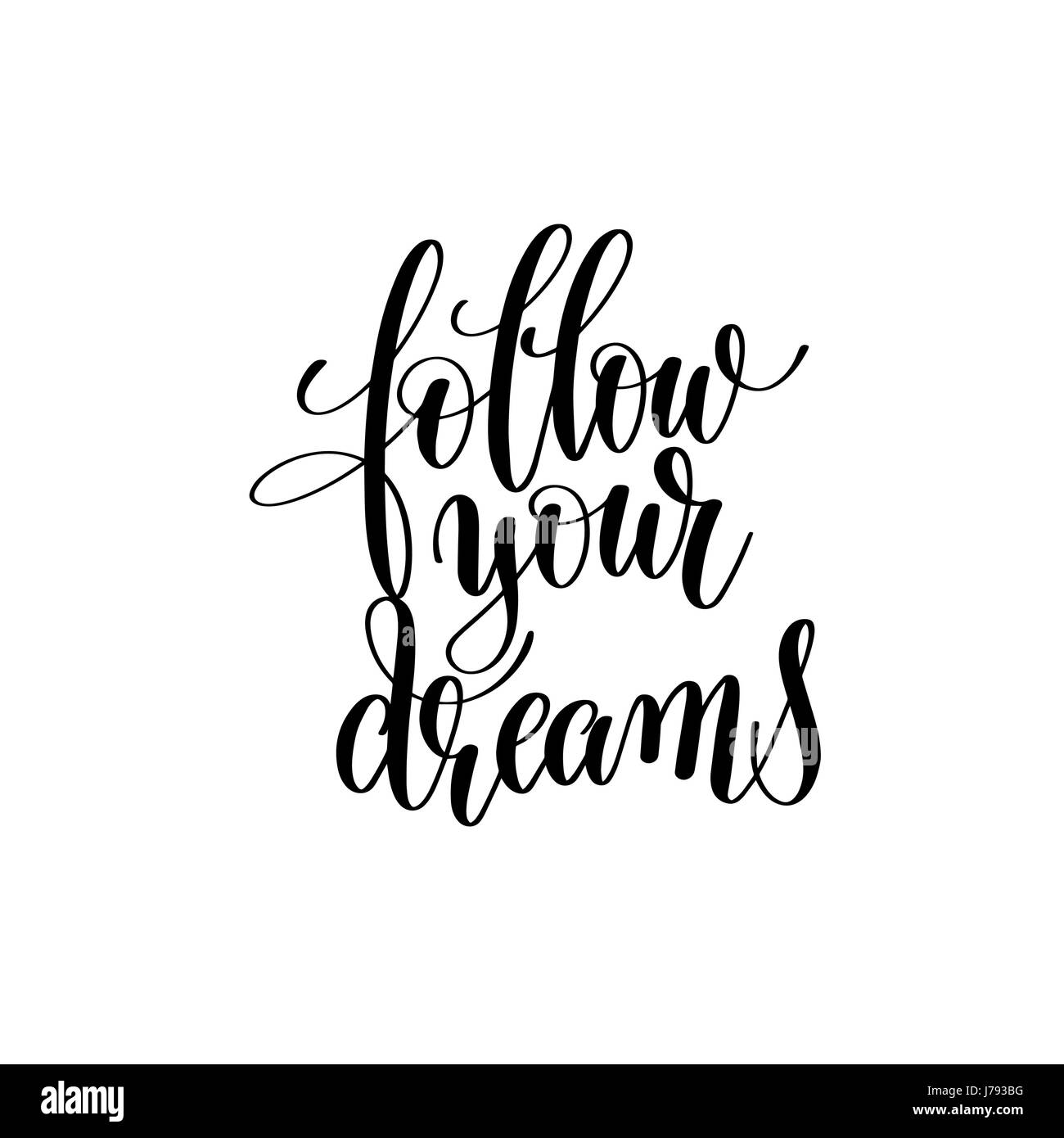 Follow Your Dreams Black And White Handwritten Lettering Inscrip Stock Vector Image Art Alamy