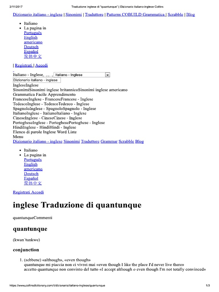 Quantunque Dizionario Italiano Inglese Collins