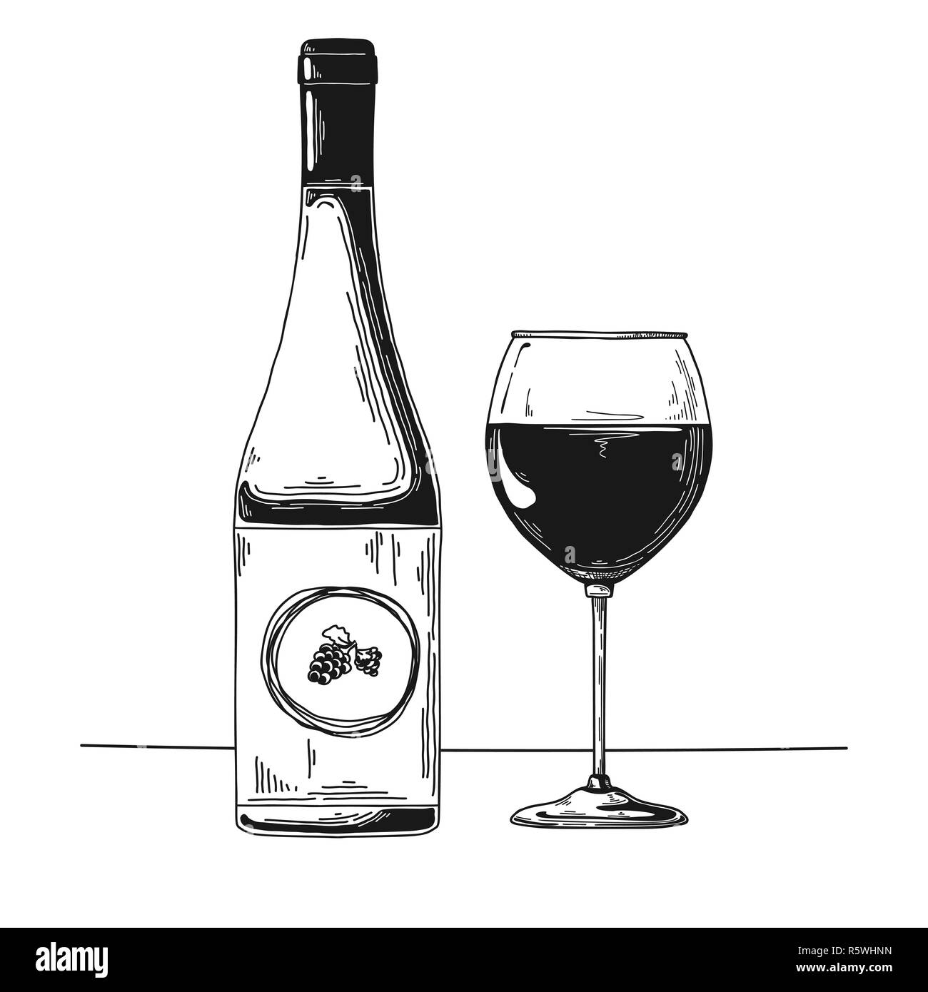 Bottle With Wine And Wine Glass Vector Illustration Stock Vector Image Art Alamy