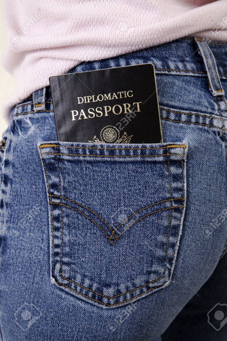 Immagini Stock Donna Con Un Passaporto Diplomatico Conficca Fuori Della Sua Tasca Posteriore Immunita Condotta Stretta Image