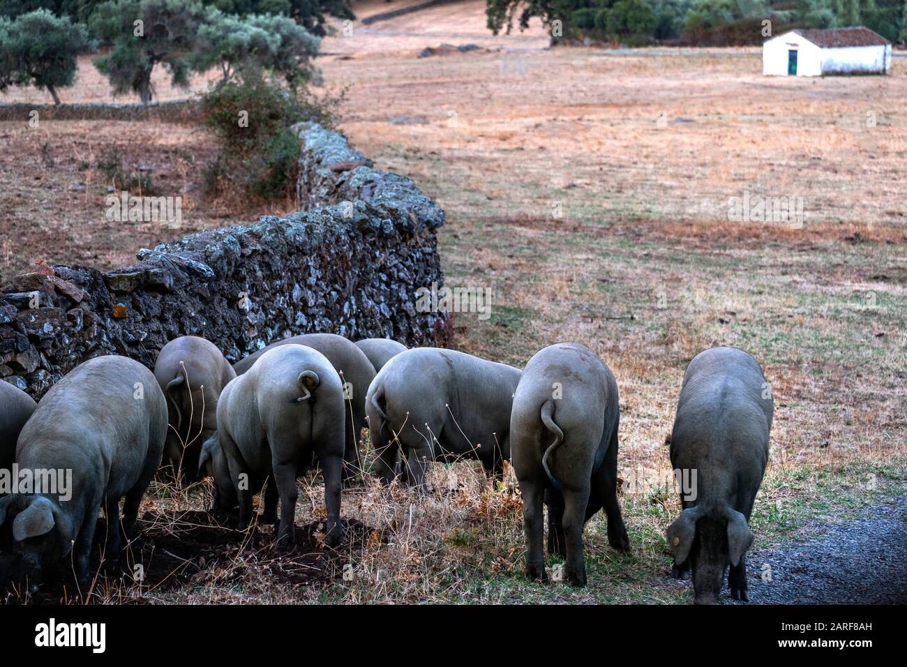 Spagna Andalusia Huelva Pig Iberici Neri Nei Pressi Di Aracena Il Maiale Iberico E Una Razza Tradizionale Del Maiale Domestico Sus Scrofa Addomesticus Che E Foto Stock Alamy