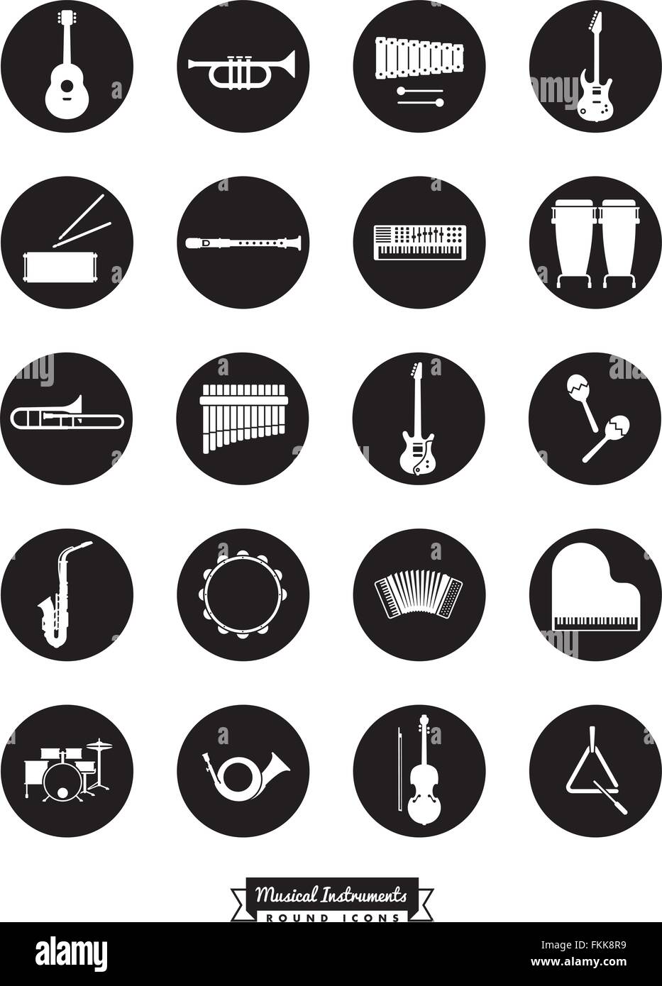 Collezione Di Strumenti Musicali Simboli Negativo Nei Cerchi Neri Immagine E Vettoriale Alamy
