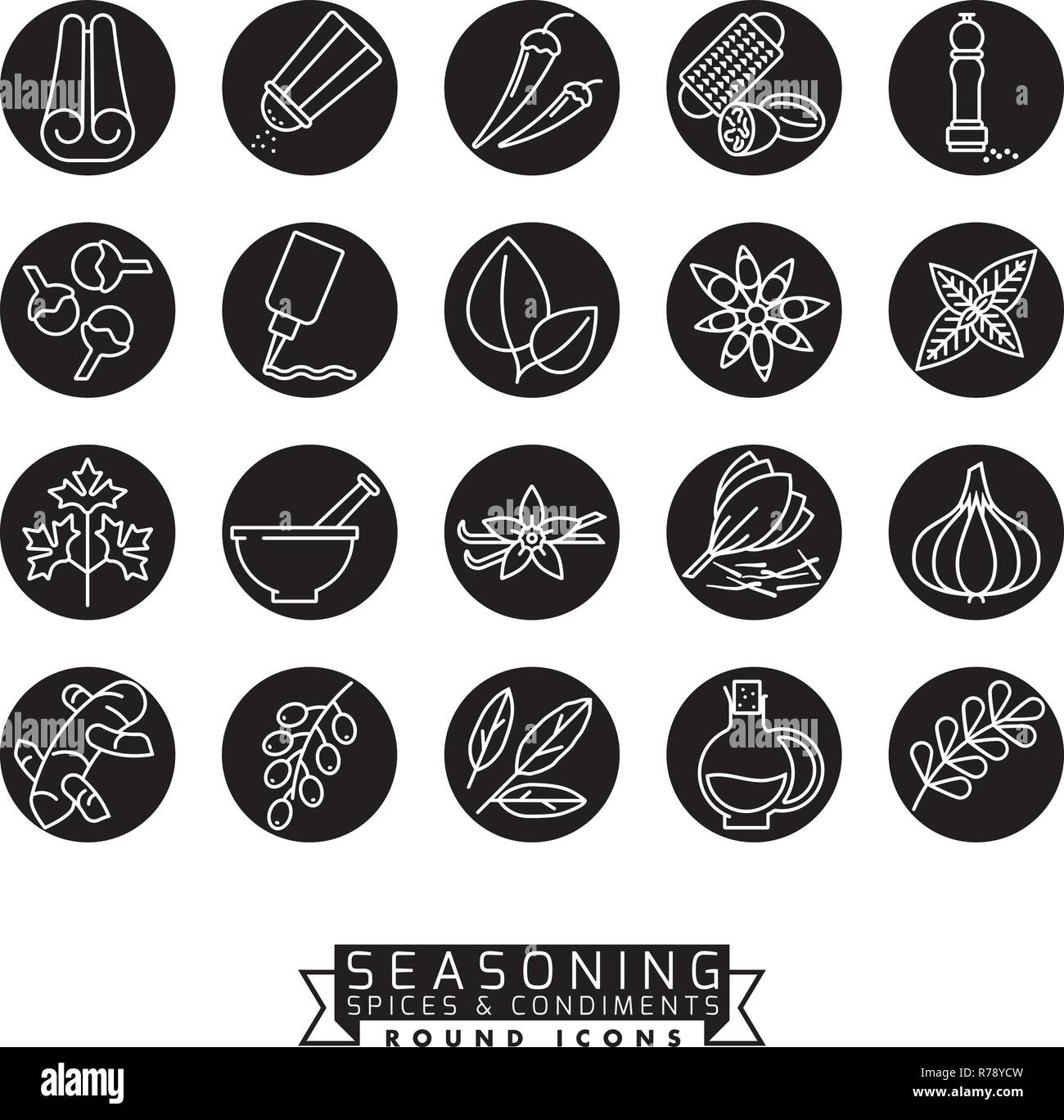 Raccolta Di Spezie Erbe E Condimenti E Stagionatura Icone Vettoriali Negativo Nei Cerchi Neri Immagine E Vettoriale Alamy