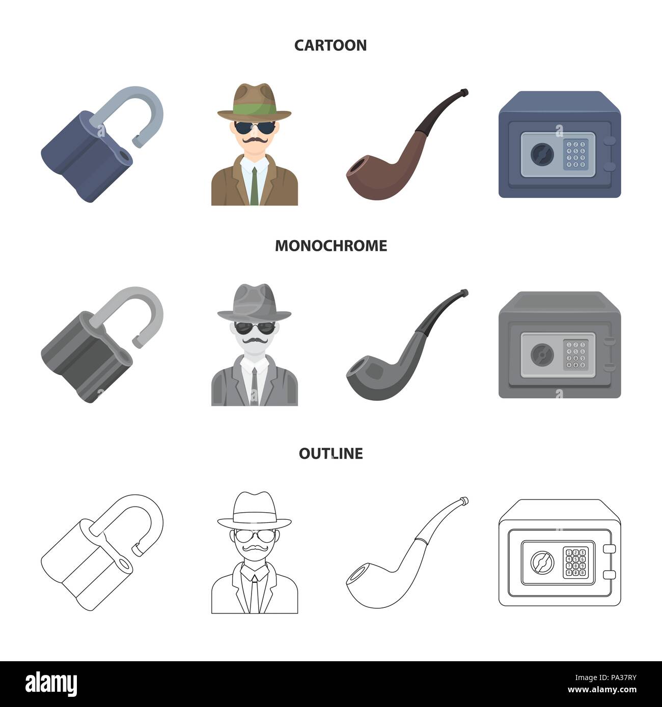 Lock Hacked Safe Smoking Pipe Private Detective Detective Set Collection Icons In Cartoon Outline Monochrome Style Vector Symbol Stock Illustration Stock Vector Image Art Alamy