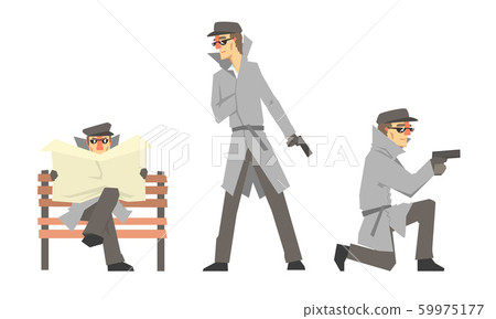 Detective Characters Cartoon Police Secret Agent And Private Search Surveillance Hiding Work Isolated Vector Set Stock Vector Illustration Of Clues Crime