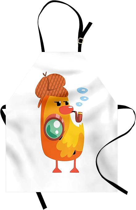 Amazon Com Ambesonne Cartoon Apron Private Detective Duckling Character With A Magnifying Glass And Pipe Duck Sherlock Unisex Kitchen Bib Apron With Adjustable Neck For Cooking Baking Gardening Multicolor Home Kitchen