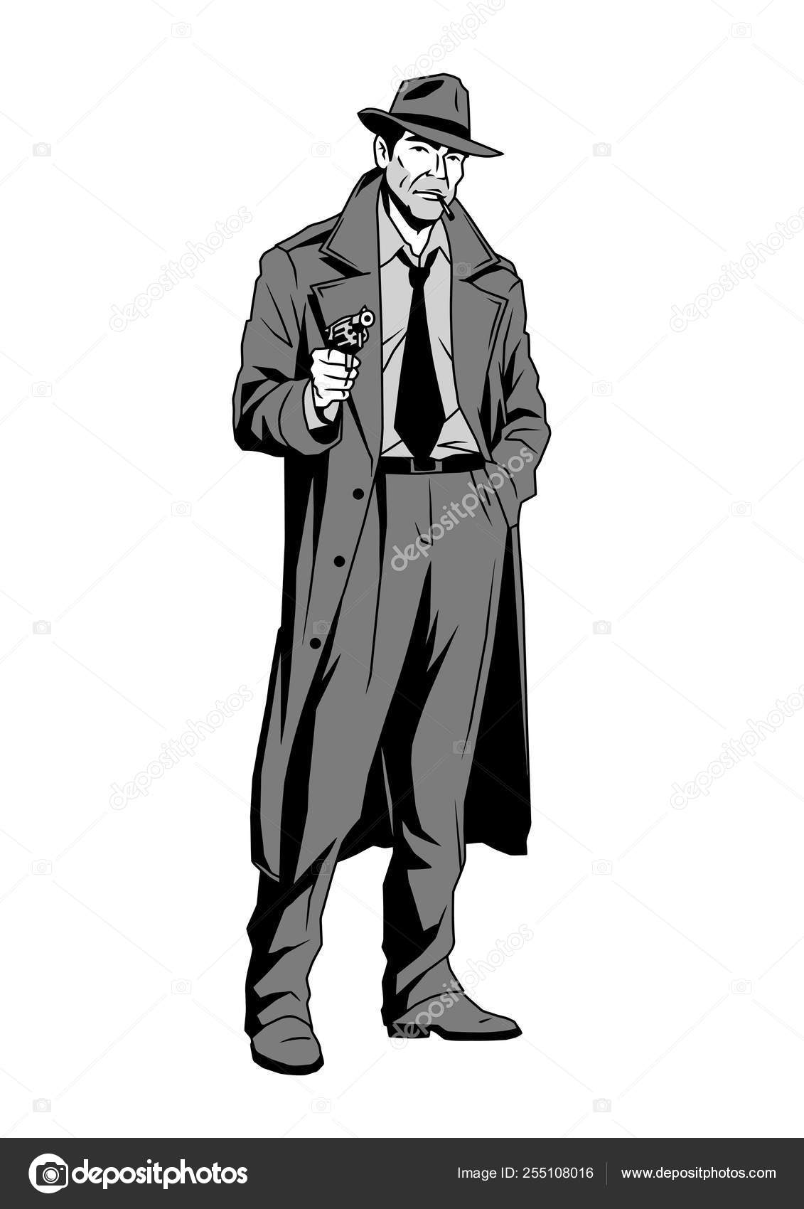 Noir Private Detective Gun Cartoon Character Vector Stock Vector C Orrlov