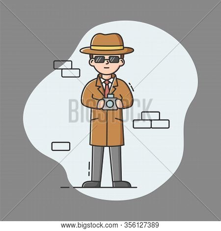 Professional Male Private Detective Hiding In Bushes Making Photo Vector Flat Illustration Cartoon Funny Spy Stock Vector Illustration Of Flat Isolated
