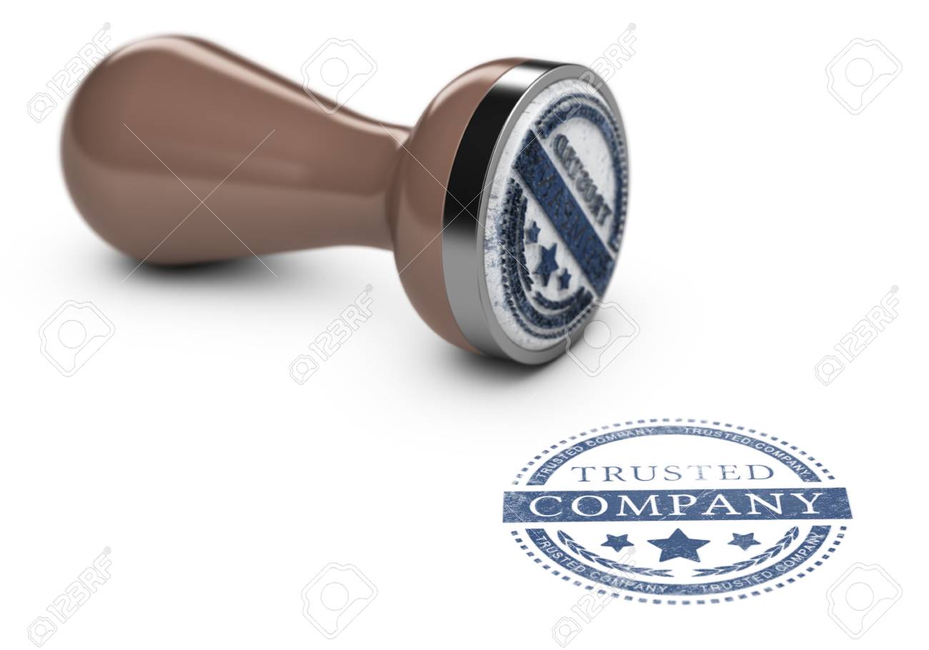Immagini Stock Illustrazione 3d Di Un Timbro Di Gomma Con Il Marchio Di Fiducia Societa Il Concetto Di Fiducia In Partnership Commerciale Image